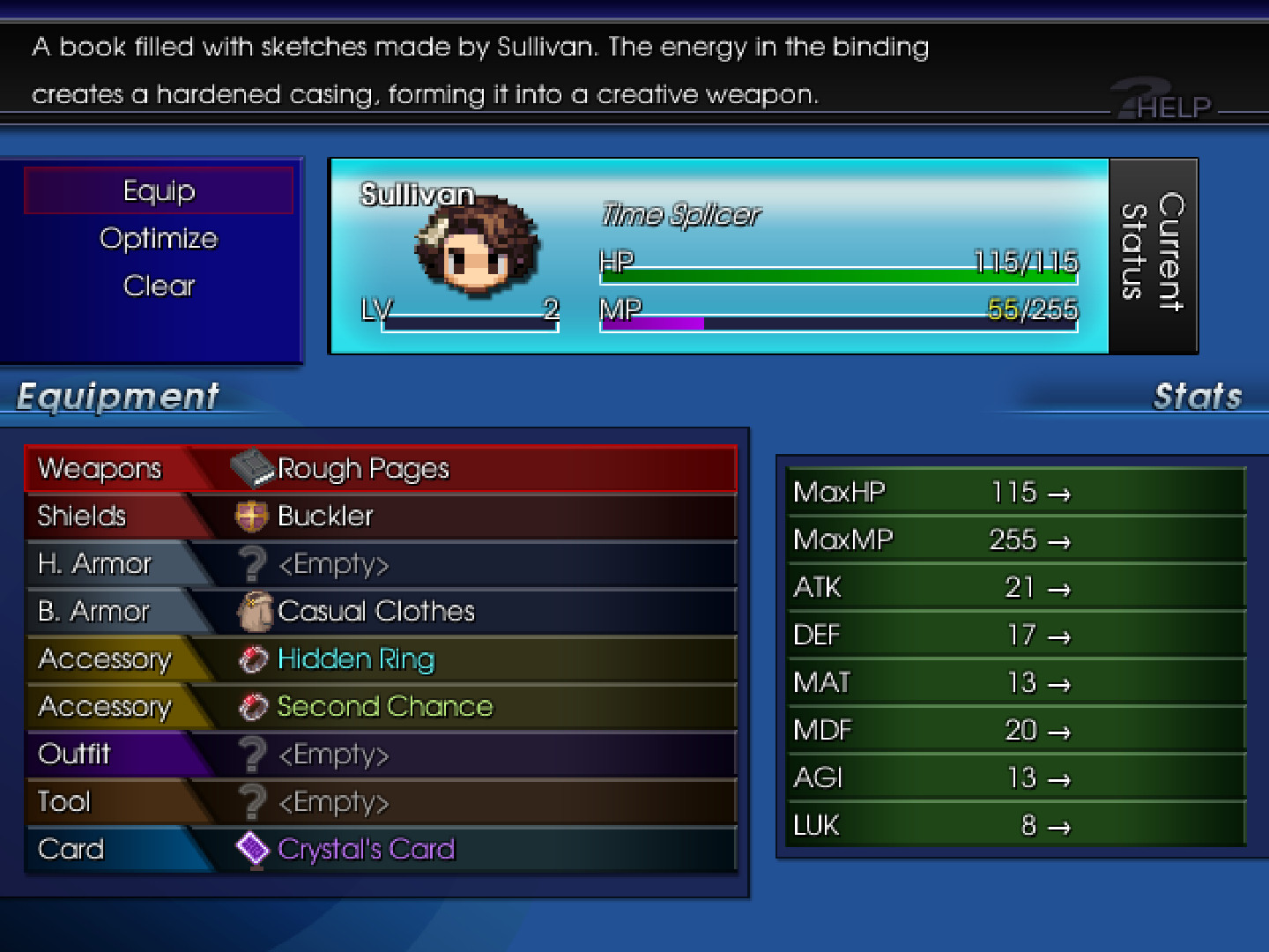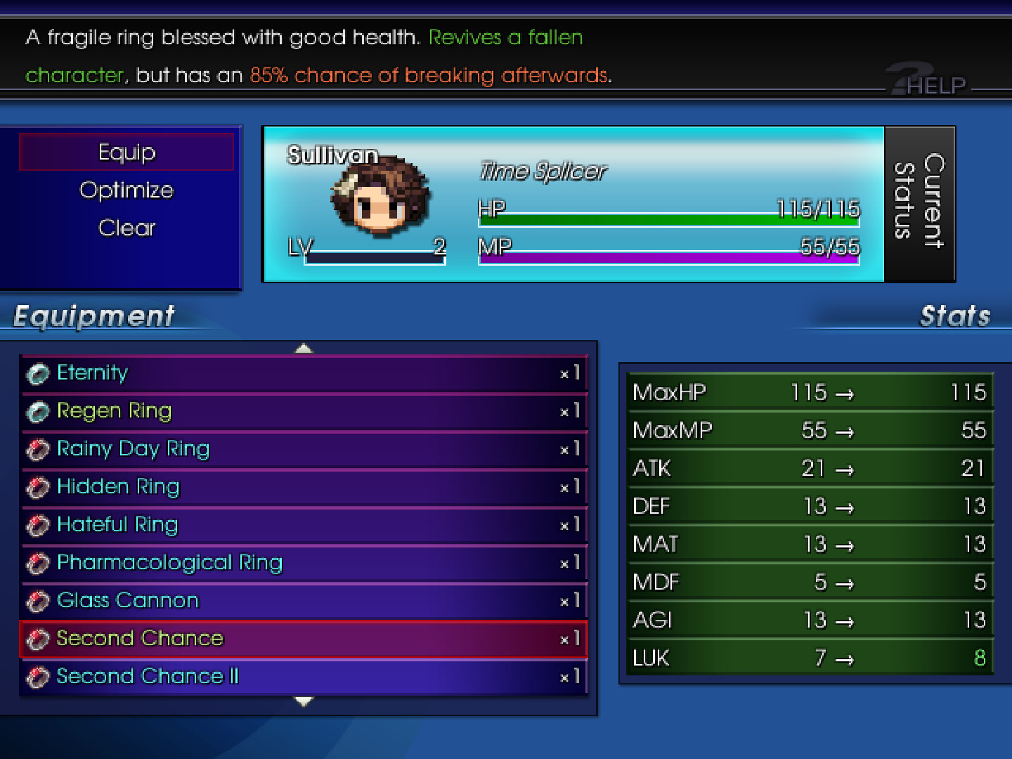 Each equip type now has its own designated color slot with a little extra stylization to give it that extra kick it was missing before! And when you select an equip slot to pick out an item, the window changes color entirely!