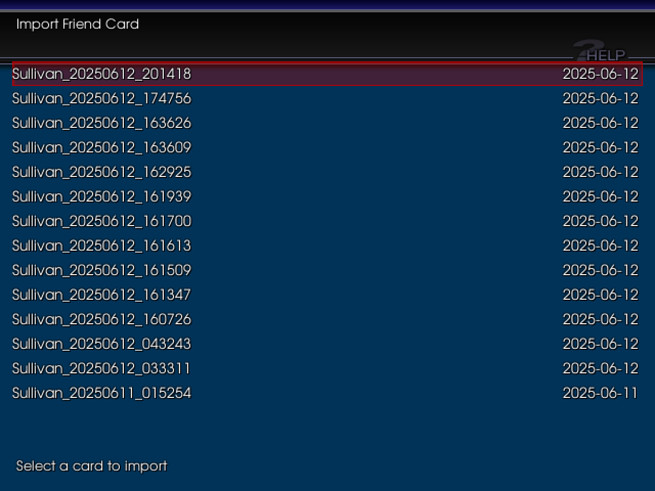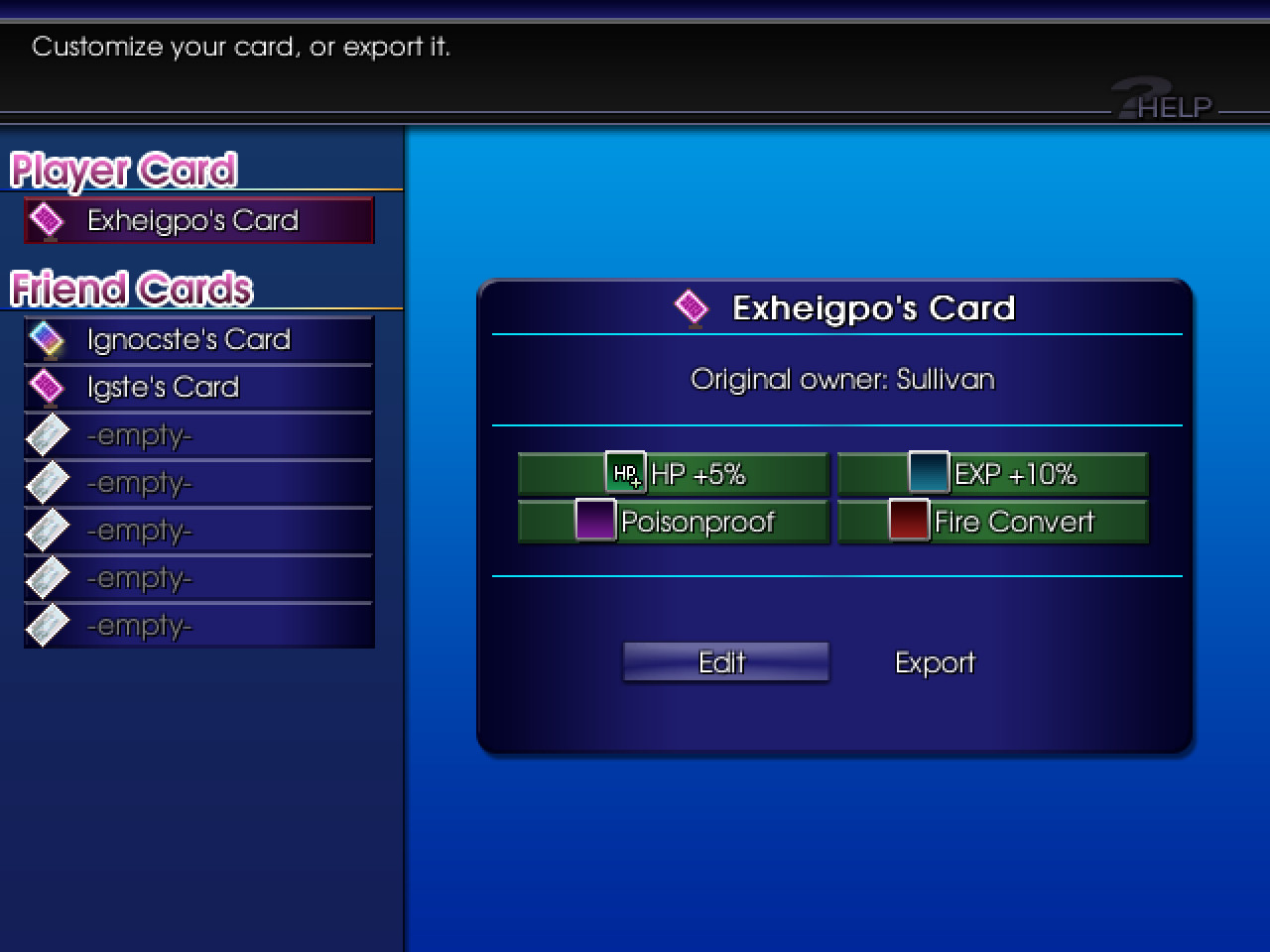 That's right, you can IMPORT and EXPORT your Player Card! These will come out as ".card" extention files, which you can share digitally with other players, whether or not they've unlocked the effects and glamour on that card. Each player gets ONE Player Card and SEVEN Friend Cards, all of which start out as empty until using this machine.