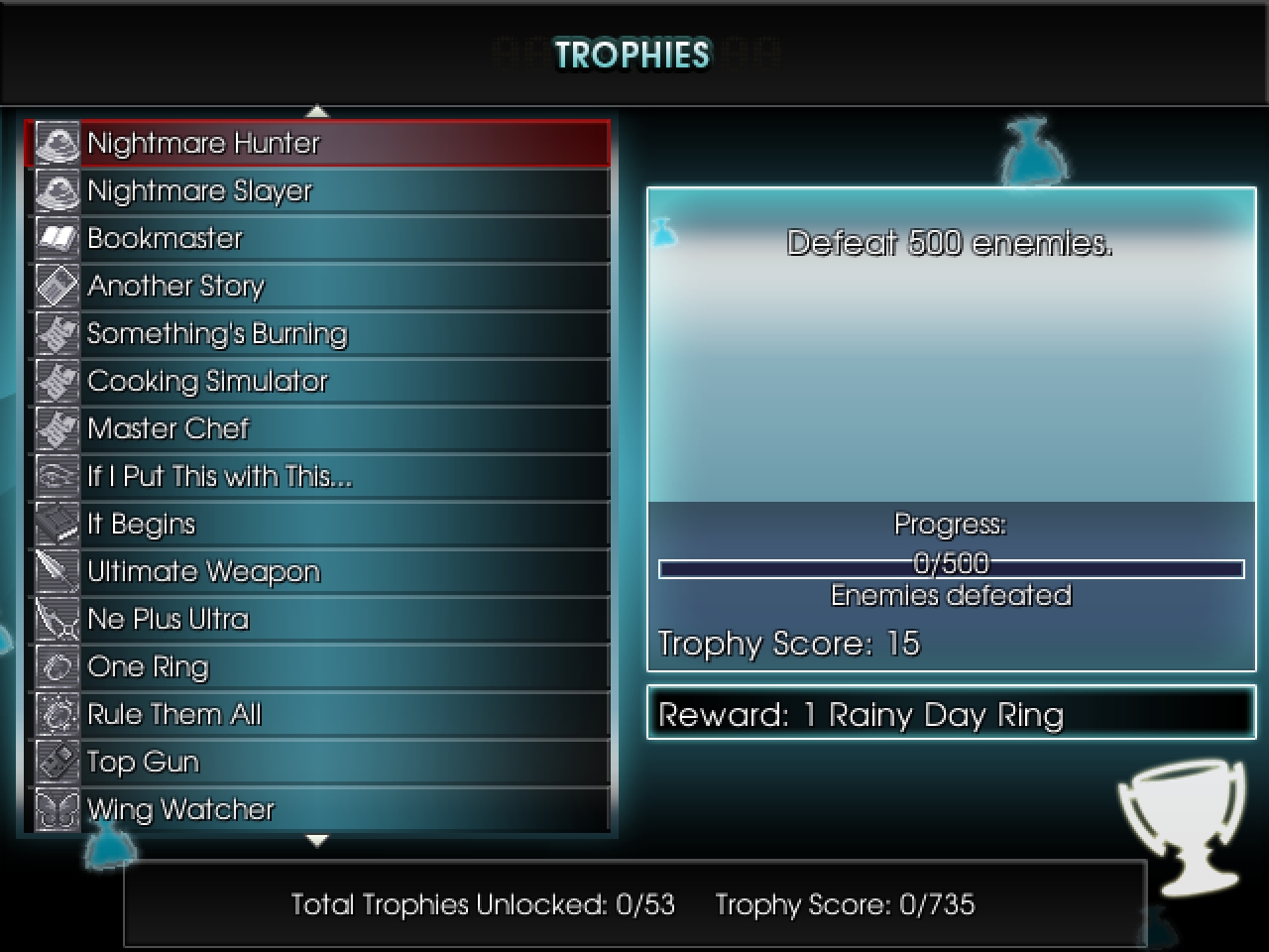 Trophies have been expanded from the 14 trophies in the Aurum Demo to a massive 53 trophies in the Full Game! Look at all those! There's still some reward and point tweaking I need to do, but as a trophy hunter myself I'm sure this will get some of our completionists excited.