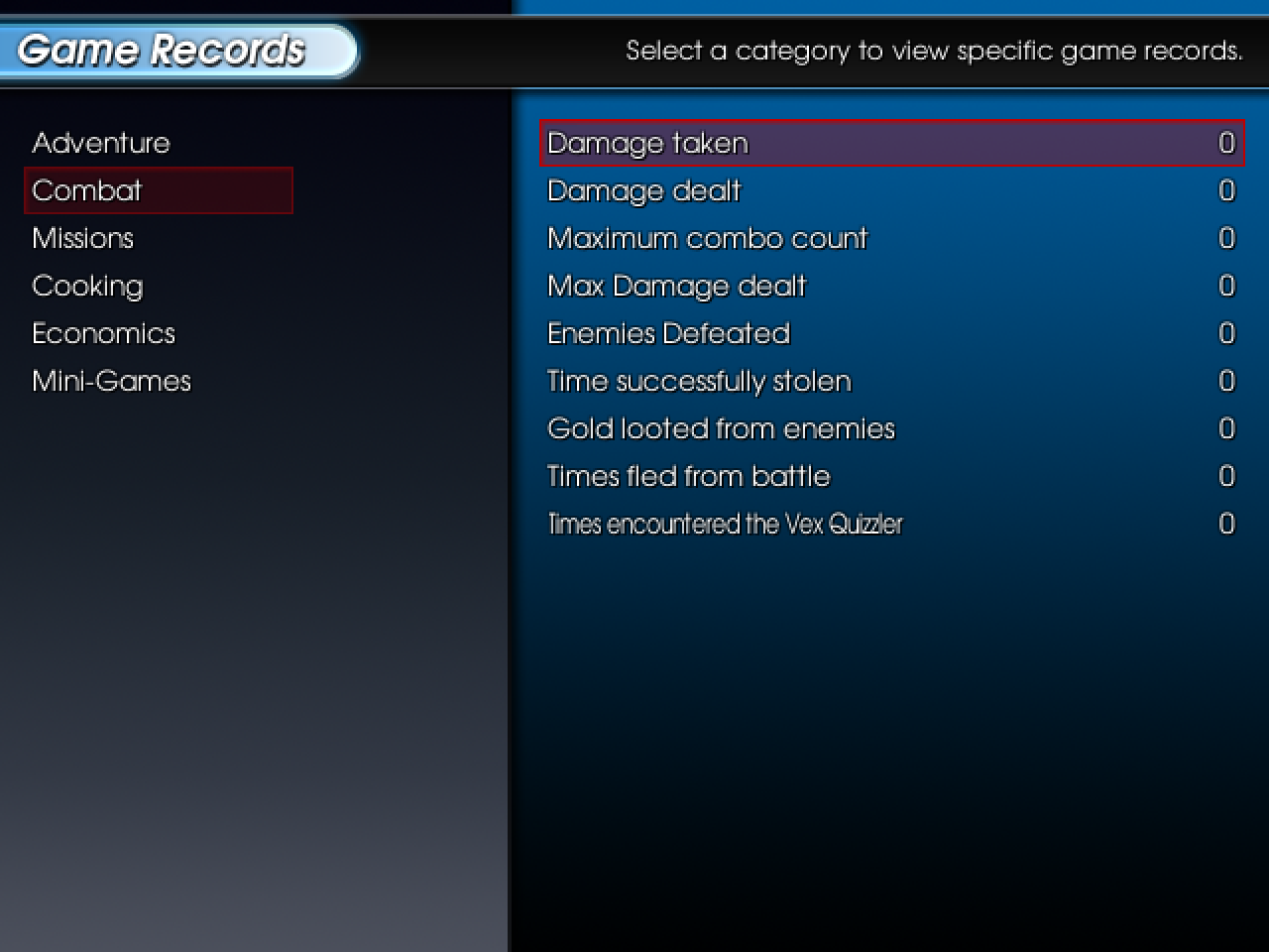 Game records haven't been fully filled out yet, but this menu heavily expands on all the different things a player has done. Personal records abound!